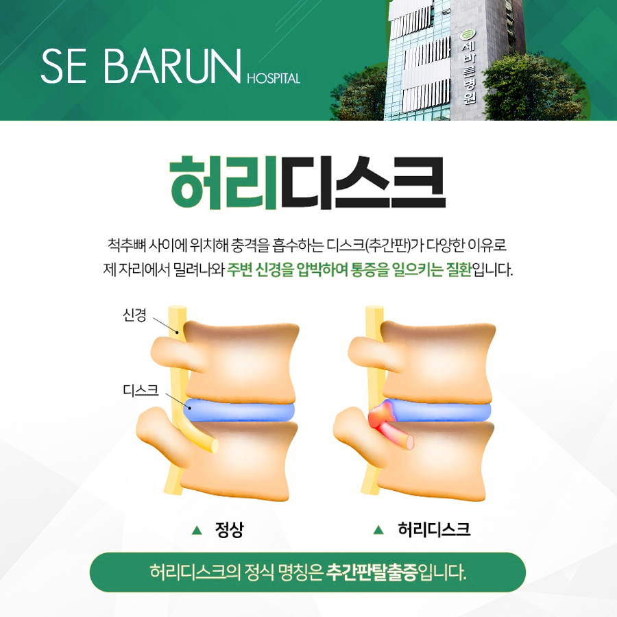 ์ฒ์ถ๋ผ์ ์ถ๊ณจ์ฌ์ด์๋ ๋์คํฌ(์ถ๊ฐํ)๋ผ๊ณ ํ๋ ์ฌ์ ๋ฅ์ ๊ตฌ์กฐ๋ฌผ์ด ์์ต๋๋ค. ํ๋ ฅ์ด ์๋ ๋ฌผ์ง๋ก ๋ผ์ฌ์ด์ ์ถฉ๊ฒฉ์ ํก์ํ๊ณ ์ ์ฐ์ฑ์ ๋ถ์ฌํ๋ ๊ธฐ๋ฅ์ด ์๋๋ฐ์. ๋ ธํ๋ ์ธ๋ถ์ถฉ๊ฒฉ ๋ฑ์ผ๋ก ์๋ ฅ์ด ๊ฐํด์ ธ ๋ฐ๋ ค๋์ค๋ฉด์ ํ๋ฐฉ์ ์ ๊ฒฝ๊ทผ ๋ฐ ์ฒ์๊ฒฝ๋ง ๋ฑ์ ๋๋ฌ ํต์ฆ์ ์ ๋ฐํ๋ ๊ฒ์ด ํ๋ฆฌ๋์คํฌ์ ๋๋ค. ์ด์ฒ๋ผ ๋์คํฌ๋ ํํ ๋ณ๋ช ์ผ๋ก ๋ถ๋ฆฌ์ง๋ง ์ถ๊ณจ์ฌ์ด ๊ตฌ์กฐ๋ฌผ์ ๋ช ์นญ์ด๋ฉฐ ์ ํํ๊ฒ๋ ์์ถ์ถ๊ฐํํ์ถ์ฆ์ด๋ผ๊ณ ํฉ๋๋ค.
